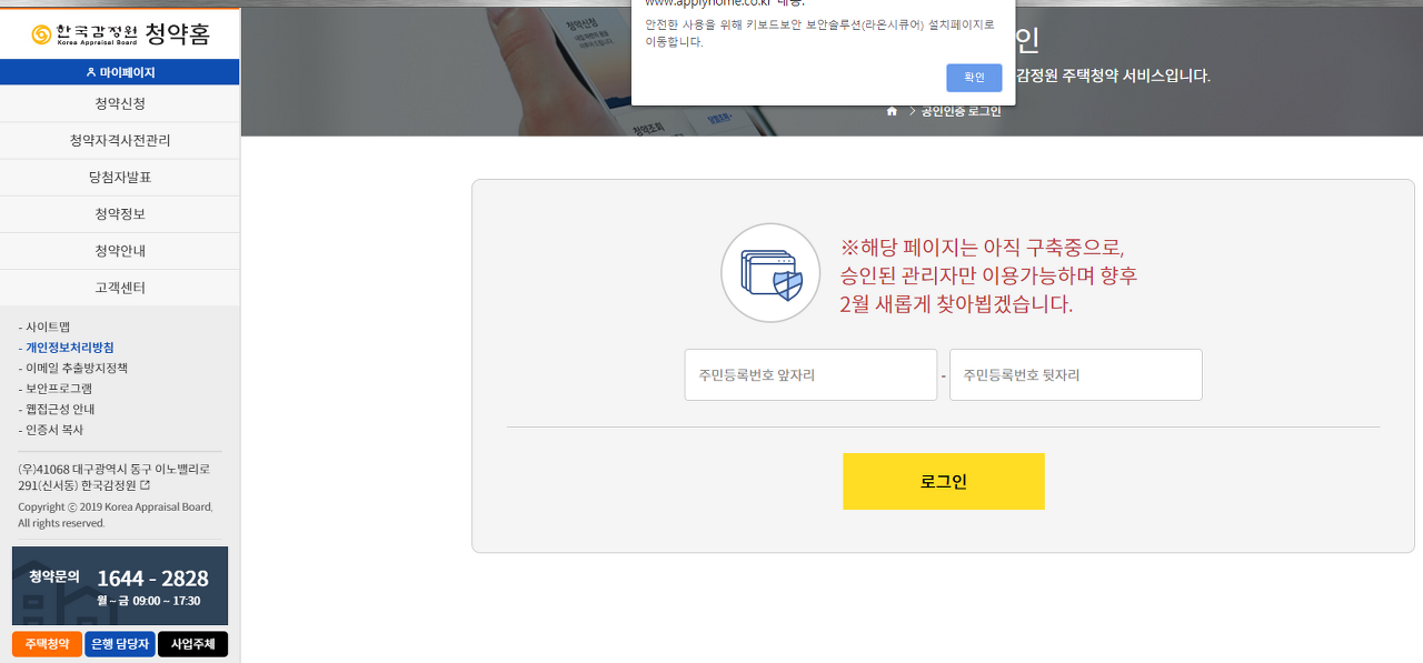 청약홈 : 청약홈 네이버인증서 로그인 (feat.공인인증서 로그인) : 웨일 브라우저 접속 → 청약홈 접속 → 네이버 공동인증서 로그인 의 순서로 진행해야한다.. 신용대출 | p2p | 신용카드 | 예적금 | 금융을 쇼핑하다, 핀다 Feb 26, 2021 · 청약홈 홈페이지 www.applyhome.co.kr 내집을 한국에서 마련할수 있다는 것은 자신이 능력 혹은 열심히 벌어서 이거나 물려받은 재산이 많다는 이야기 일것입니다. 일반적인 상식으로 쉽지 않은 것이 주택구매이기. 웨일 브라우저 접속 → 청약홈 접속 → 네이버 공동인증서 로그인 의 순서로 진행해야한다. 아파트분양 청약일정 제공 청약신청 청약자격확인 당첨자조회 분양 아파트/평형별 신청경쟁률 확인 관심지역 알림서비스 인근시세 지도서비스 불법분양권공시내역 서비스 청약통계 현황 규제지역정보 청약홈 사이트의 앱버전입니다.